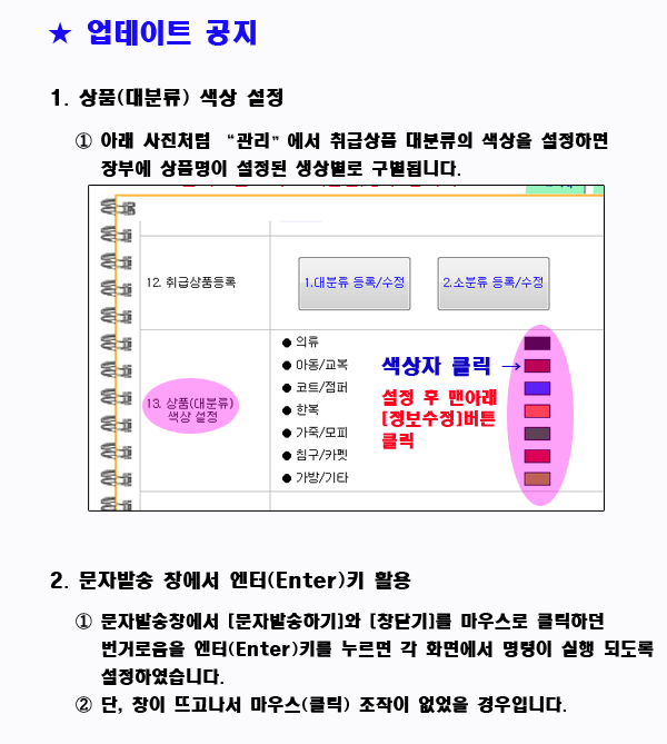 [¾÷µ¥ÀÌÆ®] ´ëºÐ·ù(»óǰ) »ö»ó ¼³Á¤Çϱâ
